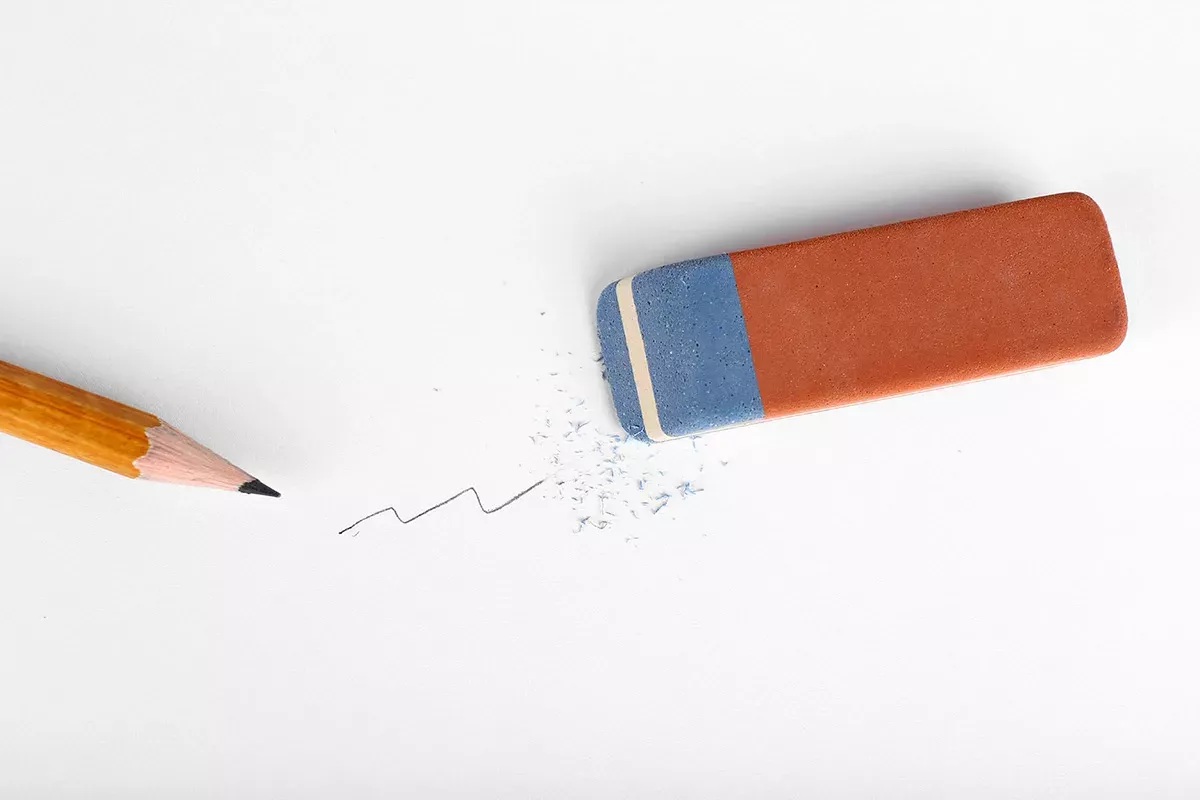 Het blauwe deel van de gum is bedoeld om potloodstrepen op dikker of zwaarder papier uit te gummen.